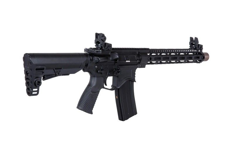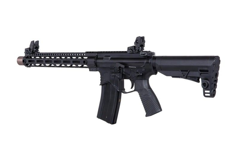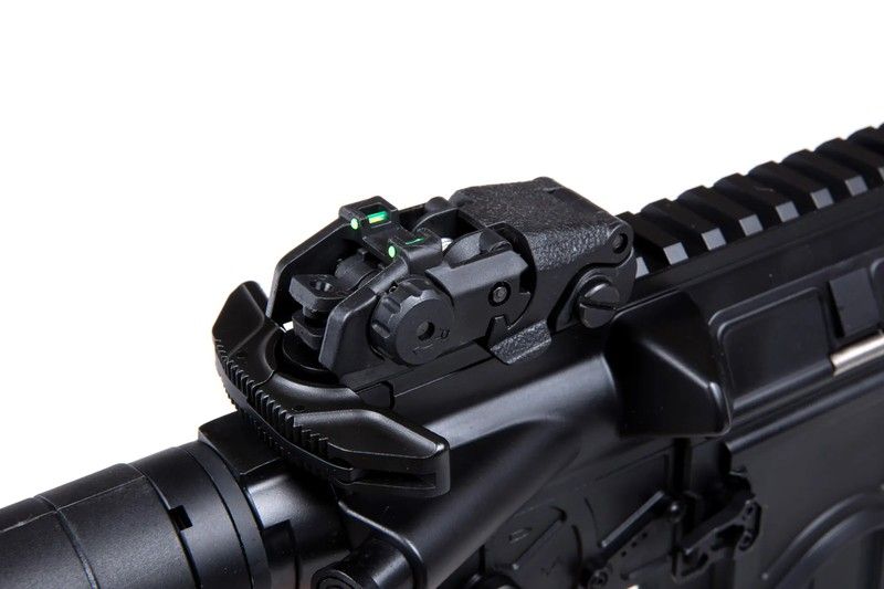 - Alzas de puntería abatibles; flip-up con fibra óptica